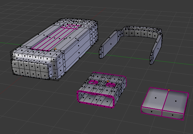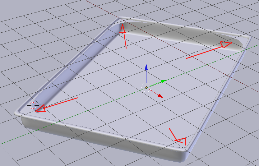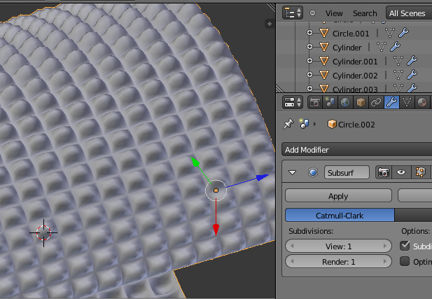 En cuanto a la forma de hacer el moleteado o superficie anti resbalante yo hice una pirámide truncada y luego use dos array para crear una superficie con ella. Luego con el modificador curve y una curva Nurbs le di la forma redondeada. Muy sencillo a la vez que se puede cambiar a otras formas y siempre quedan perfectos y cubre la superficie.