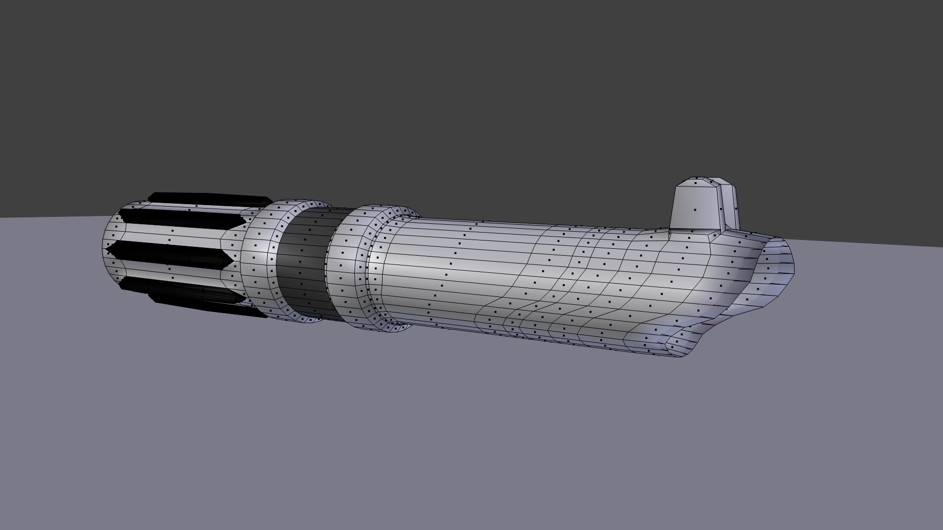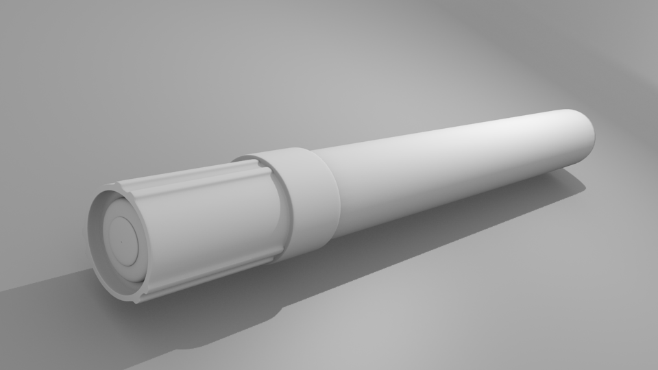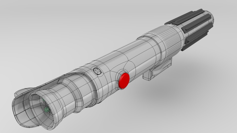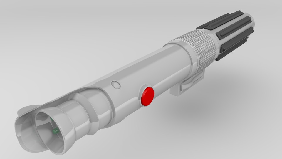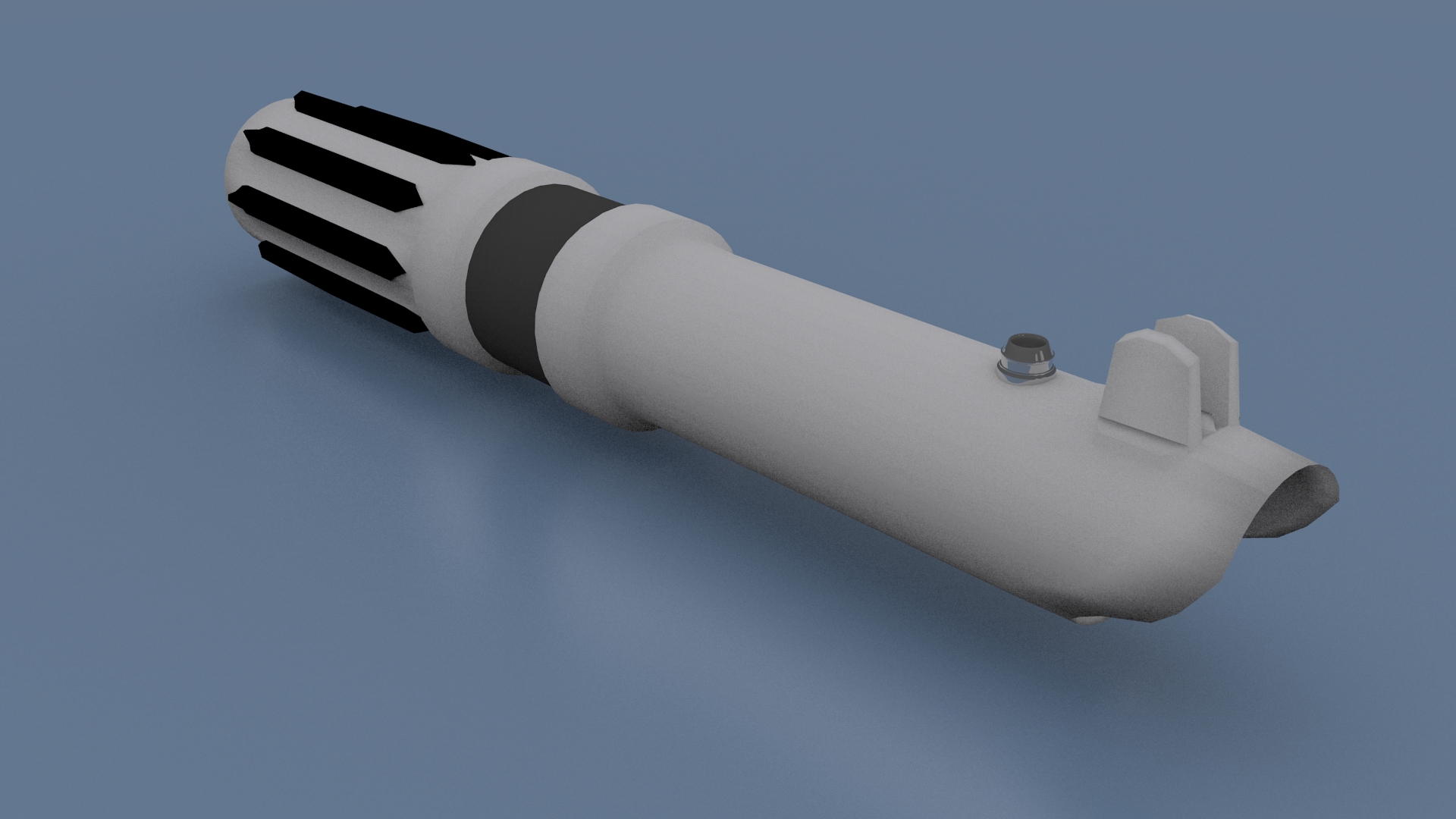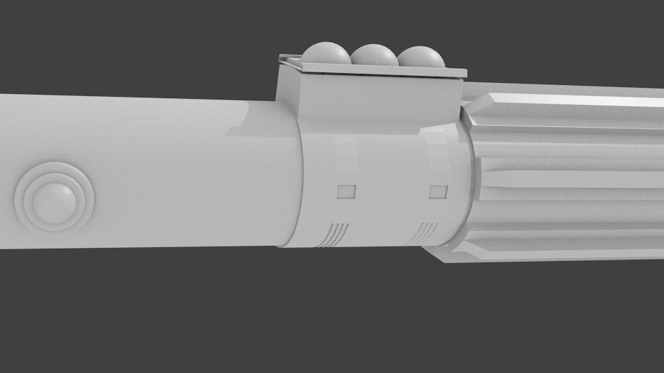 Estas haciendo el sable láser en dos partes. Bien. No pases al cañón hasta mejorar la parte del mango (fíjate en mí fotografía),le da cierto carácter.