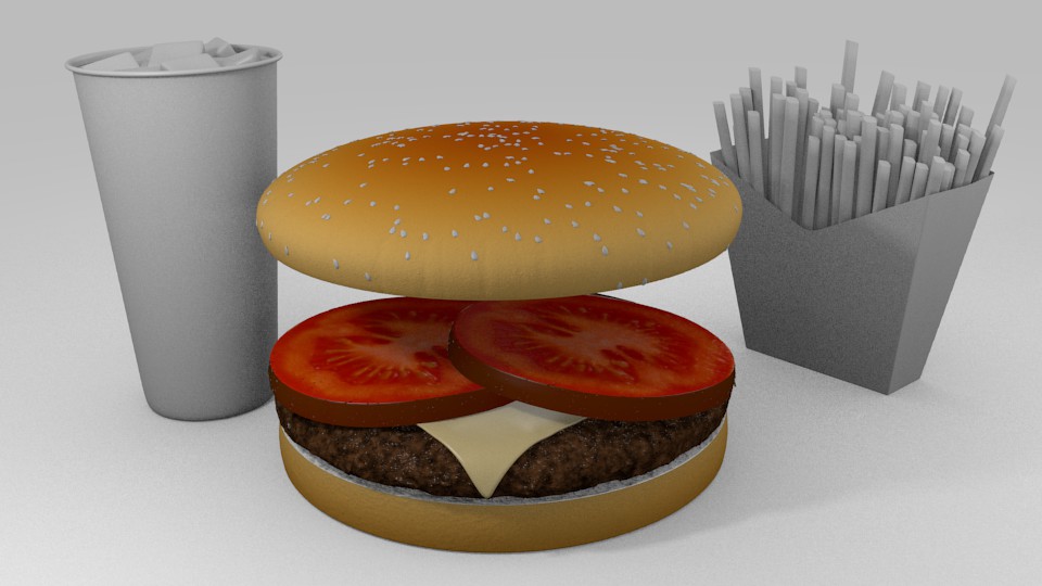 Hay que ver cómo avanza esto. Este hilo esta vida propia. Sigo liado con la hamburguesa. Antes de terminar todo el modelado, que ya me estaba aburriendo, me he puesto ha darle textura al cachocarne. ¿parece una hamburguesa? Ya la he mirado tantas veces que estoy perdiendo la perspectiva.