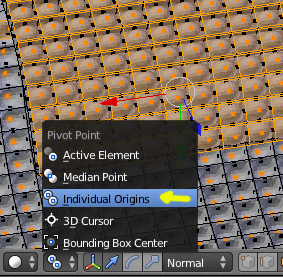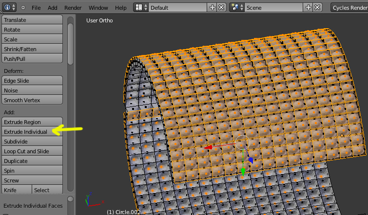 En el panel de la izquierda, seleccione extrude individual y extrudes, luego colocas el pivot point en individual origin y escalas (s)