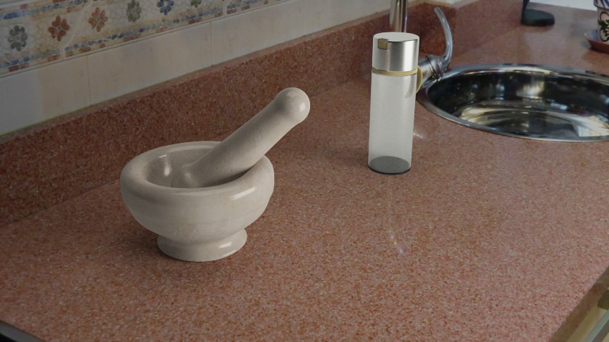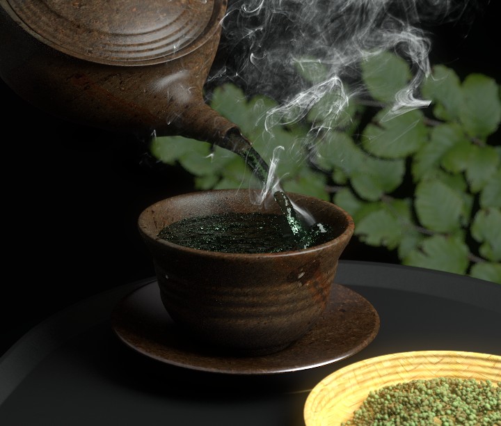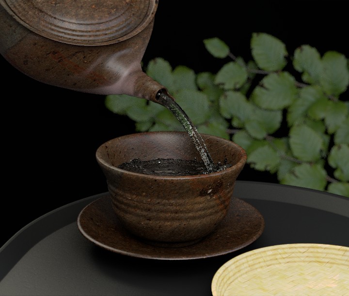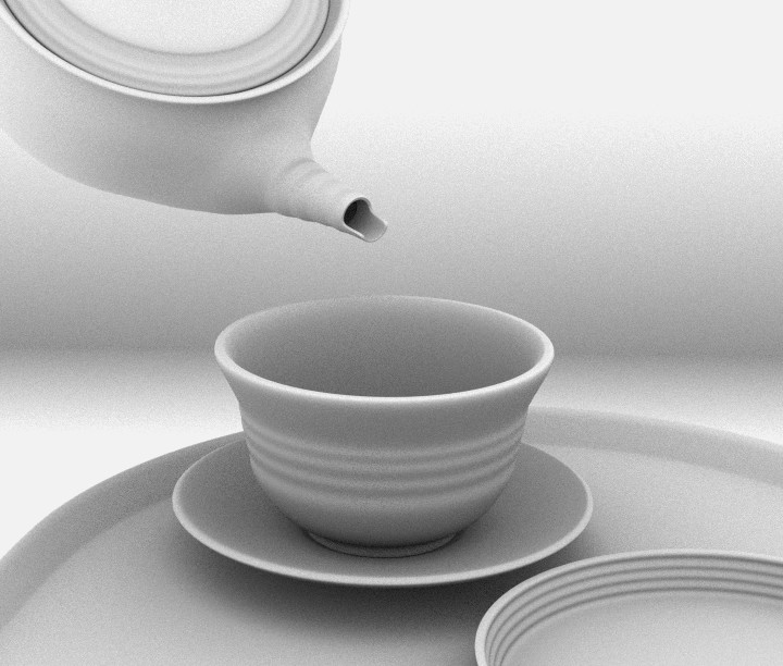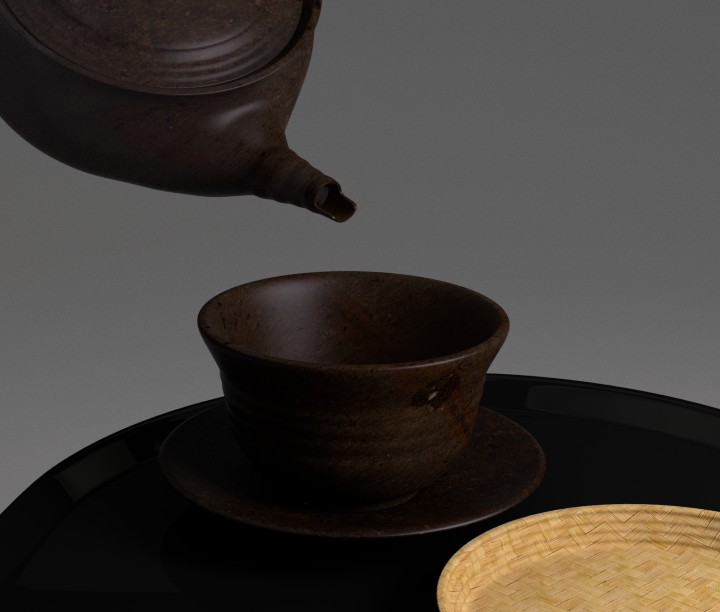 Buenas noches: Aquí una prueba de materiales. En el caso de la tetera y la taza intento simular un esmalte muy ligero con algo de absorción. Saludos cordiales.