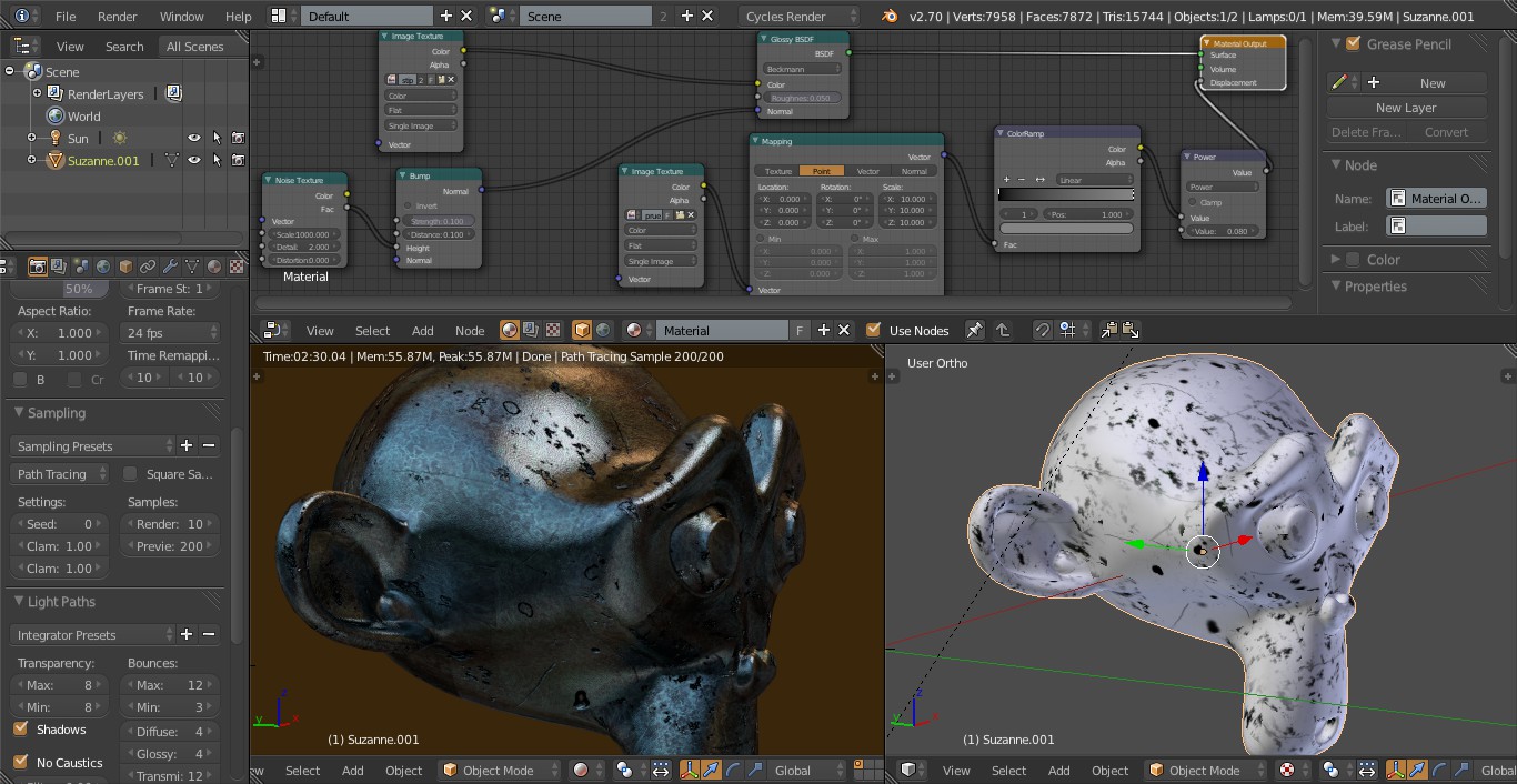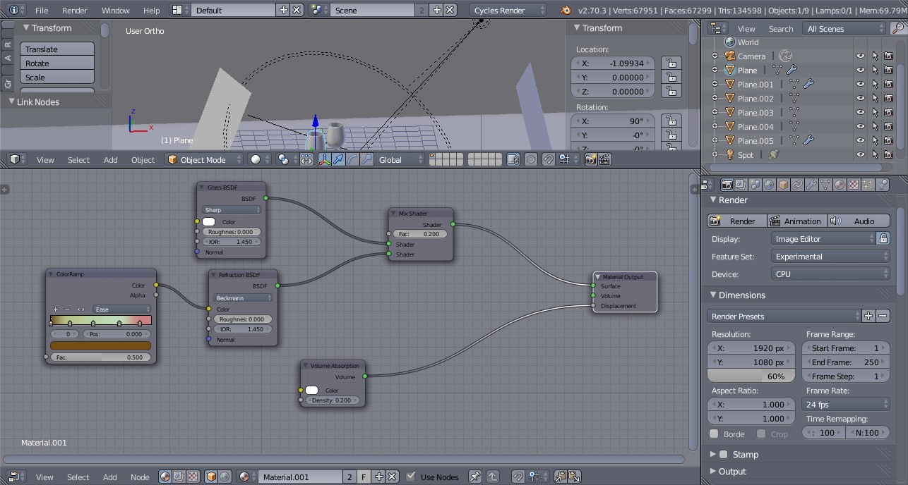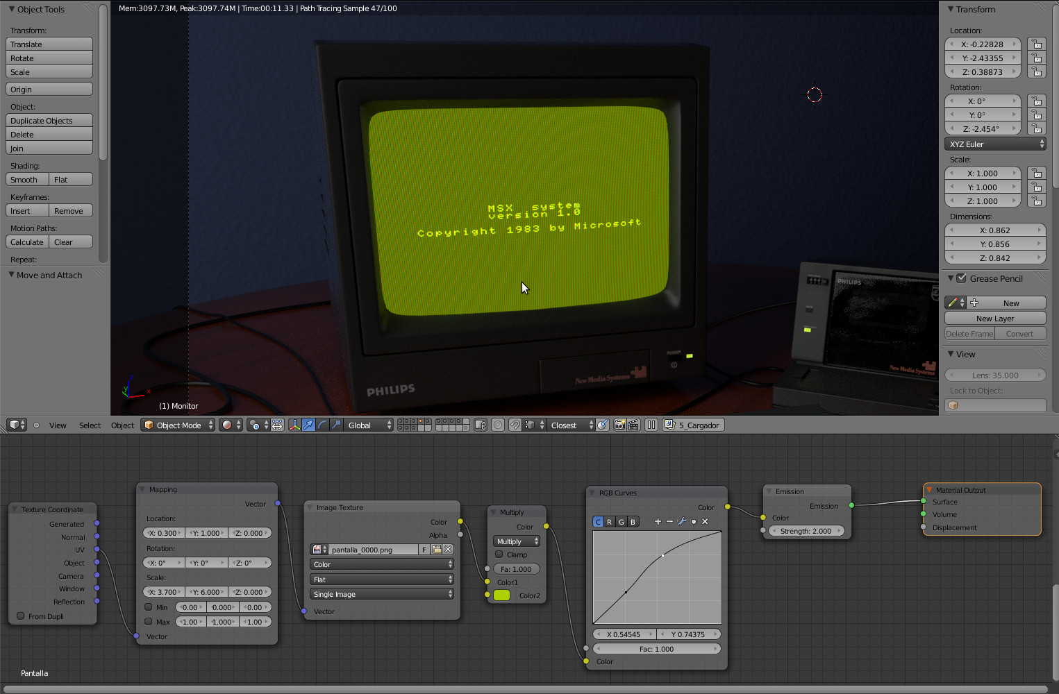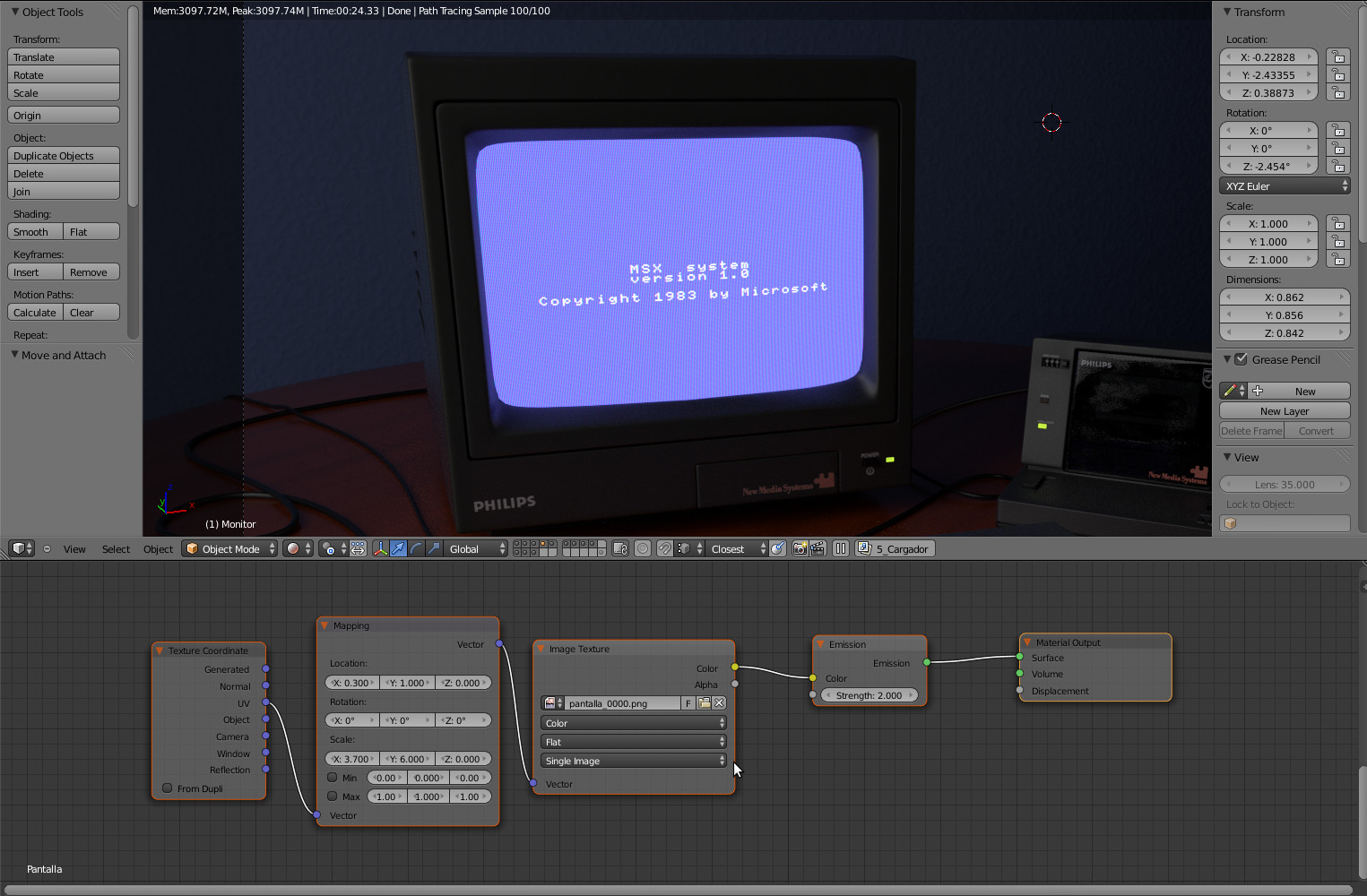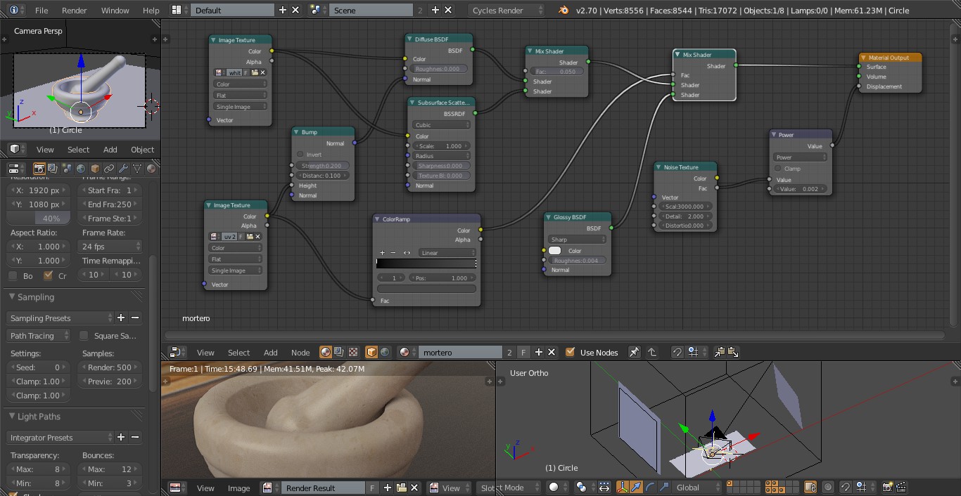 Aquí el que sabe es Juan José, yo llevo cuatro días toqueteando Cycles la verdad, y tampoco me he puesto a mirar tutoriales para ver bien cómo se deben hacer las cosas, voy a prueba error.