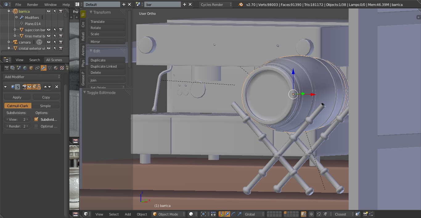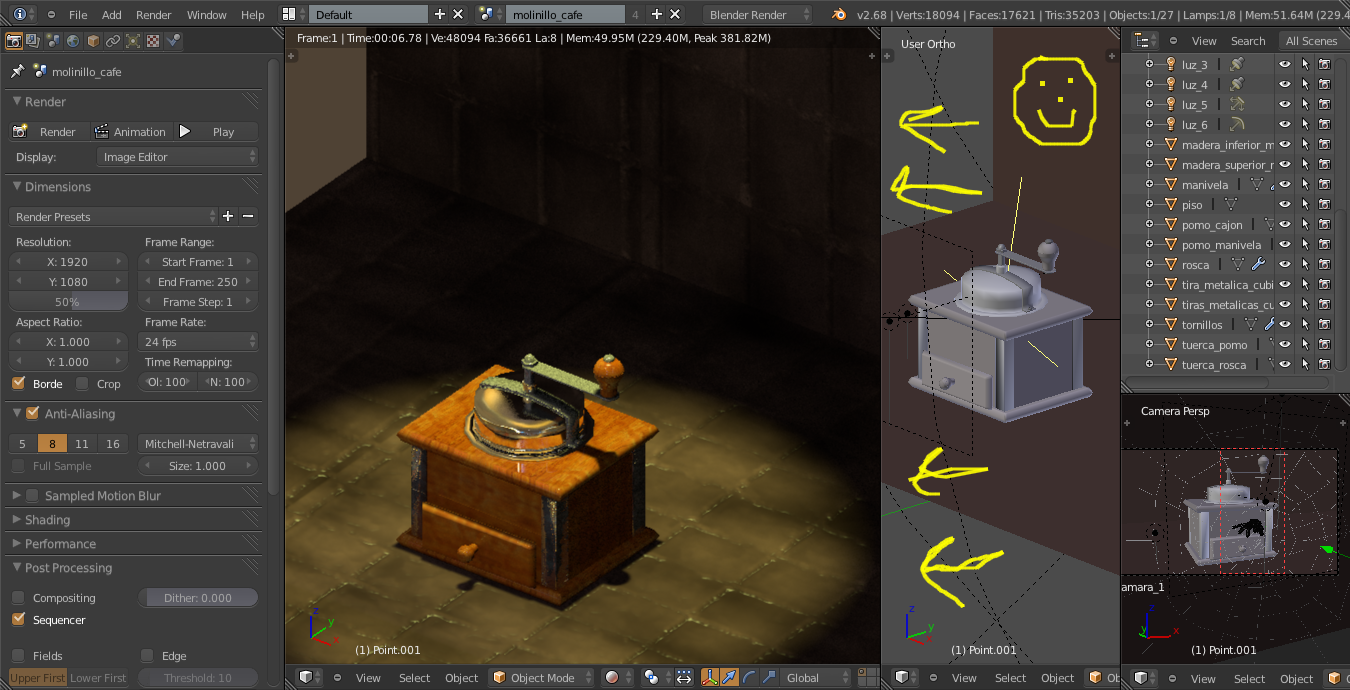 Adjunto una captura de la escena, ya entiendo la modalidad de trabajo, me parece perfecto que estemos trabajando con Blender en todo elproceso.