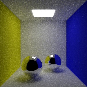 También se puede se puede apreciar que, aunque mi ejemplo tarda 3 décimas más en renderizarse que el original, con diez muestras ya ha convergido del todo, mientras que en el ejemplo original se necesitarían más de diez muestras para qué el brillo perdiese el ruido, lo que alargaría el tiempo de renderizado.