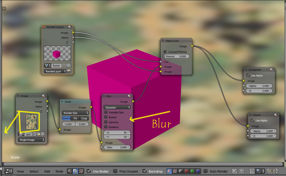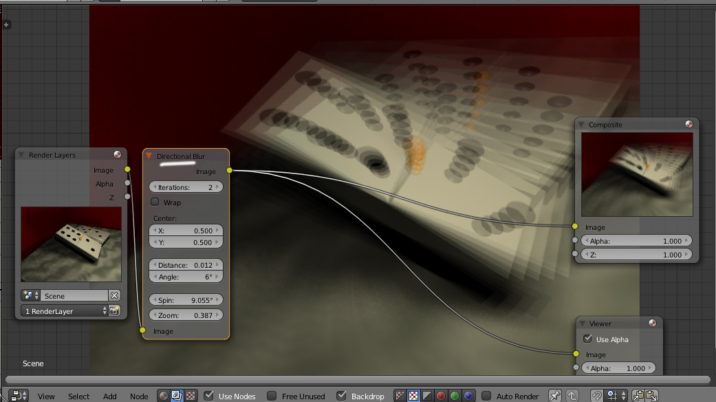 Hola asmel. Para el desenfoque debes fijar el desenfoque primero selecciona display-> límites y verás la cruz en la cámara y luego en focus-> Dist: estableces el lugar donde enfocas y en Aperture fija un valor de 0.06 o menos y ya estará funcionando. Puedes disminuir o aumentar.
