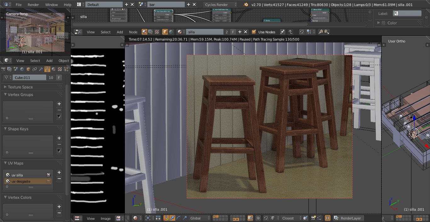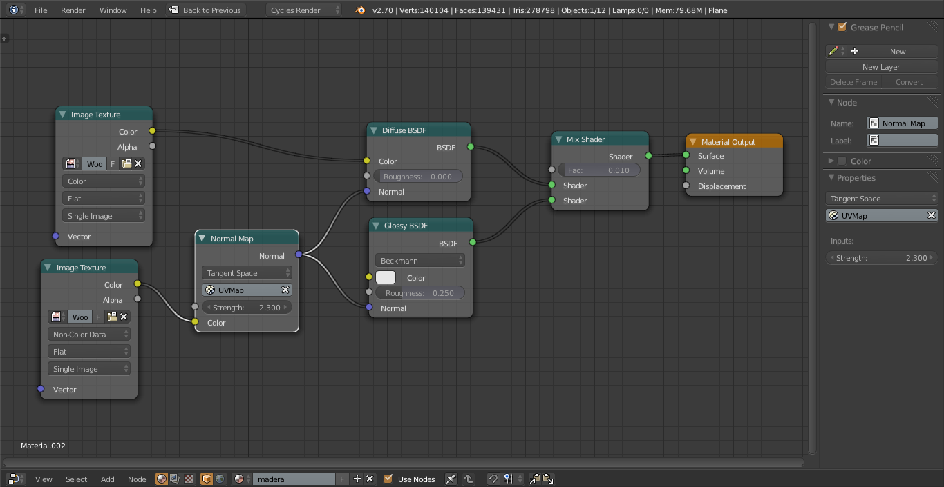 Bueno yo sigo probando los materiales con el Cycles; maderas. Ya cuando las UV ponga las publico. Saludos.