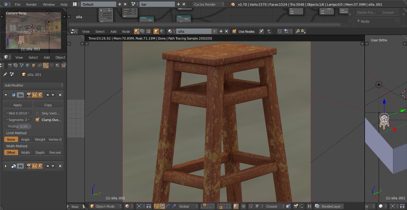 He leído los últimos comentarios y me voy haciendo una idea. Supongo que será perseguir una idea de lo que se quiere y estar probando el material con sus nodos. Así me ha quedado el taburete. Saludos.