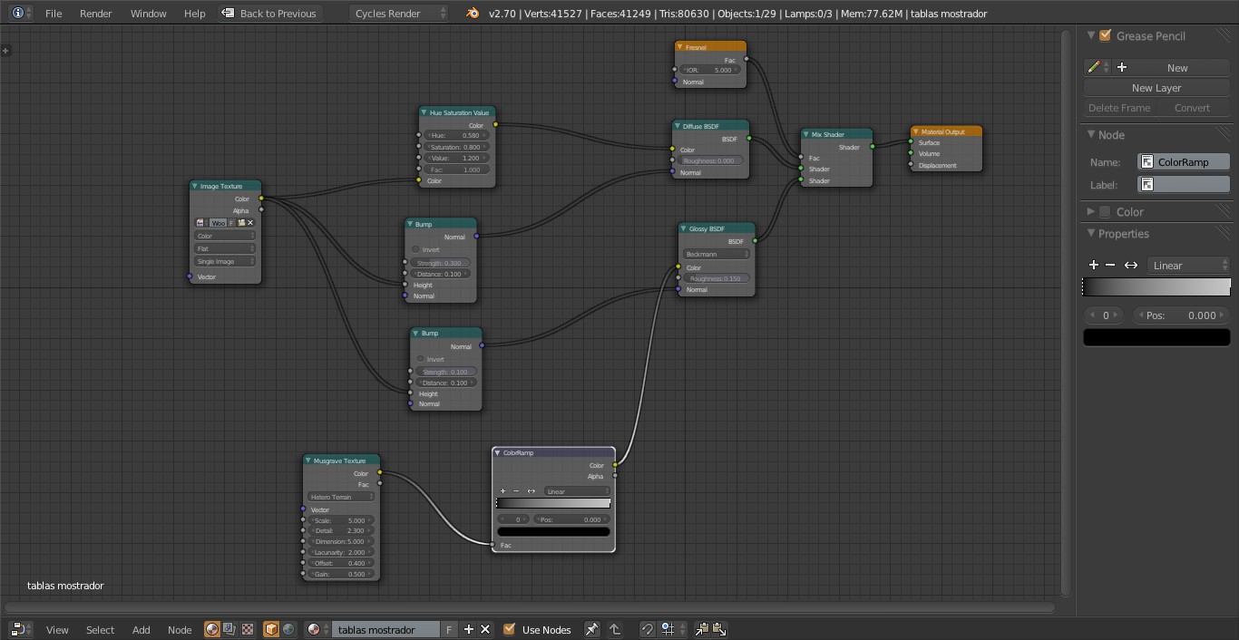 Sigo haciendo pruebas con el Cycles y con los materiales de madera; que hay bastantes. Se parece en algo las tablas, a la imagen real? Por aquí dejo los nodos. Saludos.