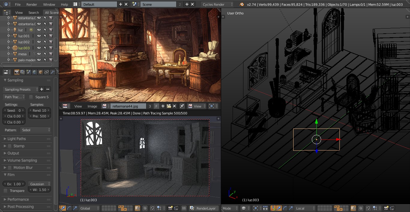 Aquí pongo la imagen de este reto semanal. La he dejado en 1000 samples de Cycles. Me hubiera gustado limpiarla completamente, pero mi equipo se me va a la playa de vez en cuando, y yo tendré que hacer lo mismo. Bueno y esperando el nuevo reto. Saludos.