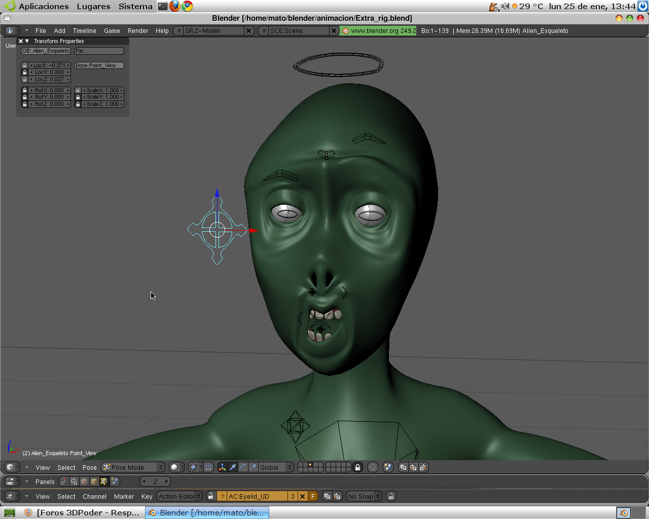 El problema está con el desplazamiento de la ventana 3d, que aún no lo domino demasiado en la 2.5, pero de momento tan solo la estoy probando, así que, no le doy demasiada importancia. La tecla de comando, me marea bastante.