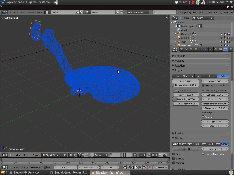 Los fluidos por partículas ya generan la superficie del líquido. Ahora falta todo el tema de optimización. A ver cómo progresa. http://Farsthary.wordpress.com/2010/...rticles-world/.