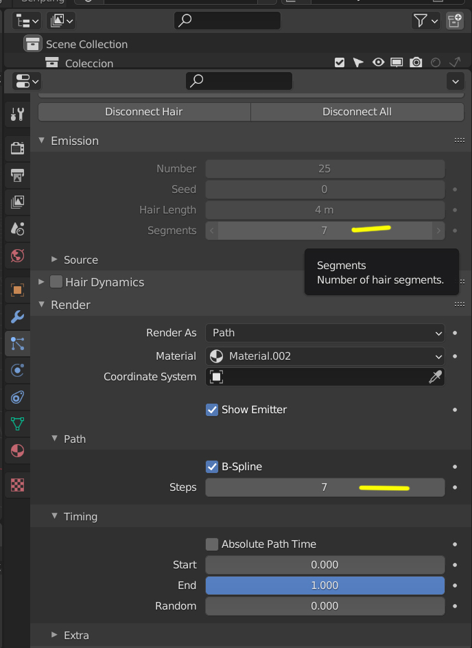 El pelo tampoco me queda bien aun, pero estoy aprendiendo, creo, acabo de darme cuenta que puedes seleccionar fibras sueltas (los 'vértices' digamos), hasta ahora estaba intentando peinar todos los pelos a la vez y me estaba desesperando. :) Ya puestos, sabéis qué parámetro es el que define lo mucho que puedo acercar los vértices de pelo al personaje? pensaba que era el de Collision, pero no lo tengo claro.