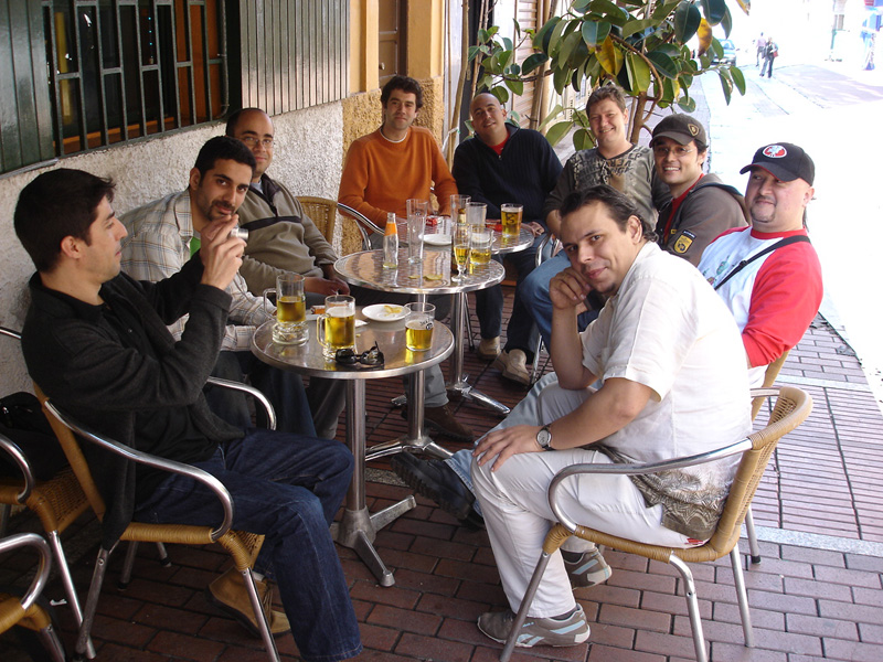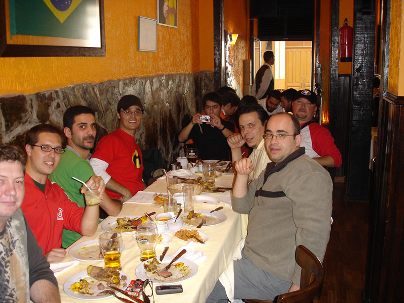 itinerario: 12:30 para tomar una cerveza, charlar y pasar miedo al vernos las caras, una vez pasado el susto irnos a comer a eso de la 1:30 o las 2:00. Bufet brasileño candombe (14 EUR). Y luego ya veremos.