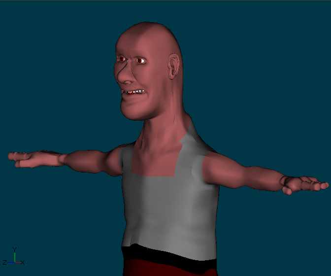 La versión que use para el corto no tenía biselado y las puntas cantaban mucho que eran 3d. Creo que lo hice por ahorrar unos pocos parches. Pero el personaje gana mucho en calidad. En ese tiempo no sabía que se podía animar con un proxis y dejar el personaje complejo para el render final, pero bueno eso se aprende equivocandose.
