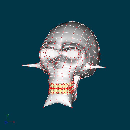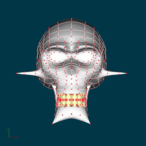 Bien. Me hice el tiempo y cuelgo algunas imágenes del personaje preparado para su animación facial. El modelo tiene más Splines en el área de las cejas y ojos para resaltar las expresiones, pues al carecer de ojos, las cejas se transforman en el principal medio de expresión.