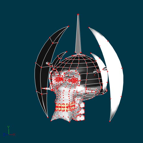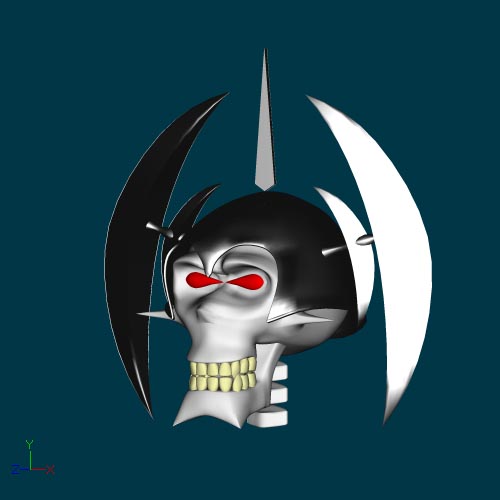 Aquí les dejo dos imágenes del personaje la muerte con el casco puesto. Las imágenes están renderizadas en modo model, así que, no tienen sombras ni texturas ni luz ni nada. Faltan las texturas de las cuencas de los ojos y la nariz.