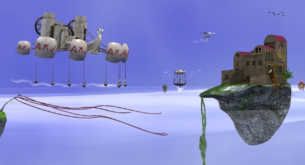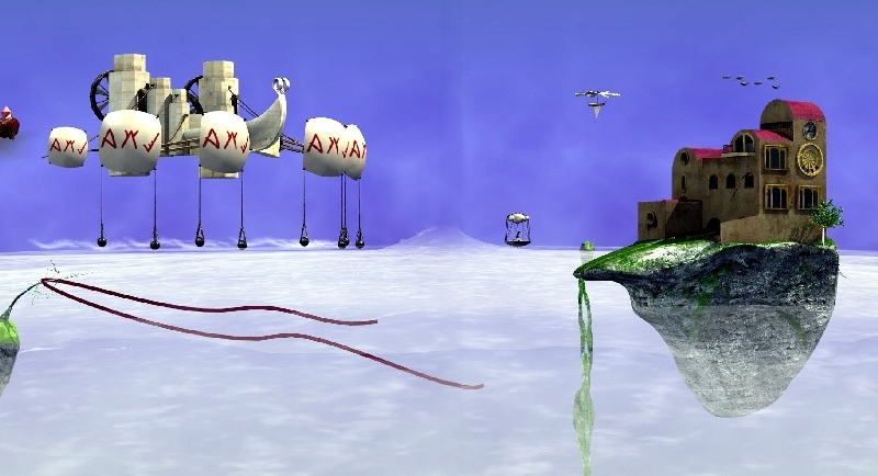 Le noto como si faltara movimiento, o dinamismo, o algo, los objetos están demasiado estáticos en el aire. Bueno, la casa vale que esté totalmente quieta, pero las naves yo las inclinaria unos pocos grados en la dirección en la que supuestamente se están moviendo para que por lo menos parezca una escena un poco más viva.