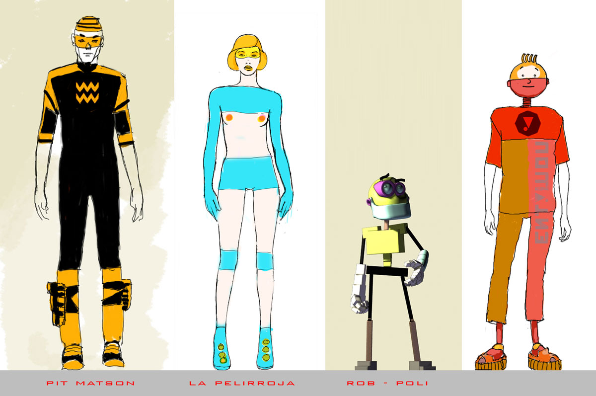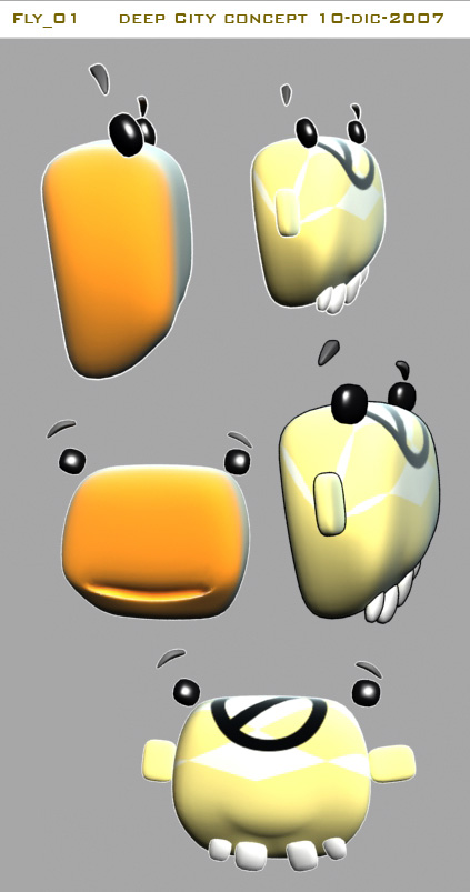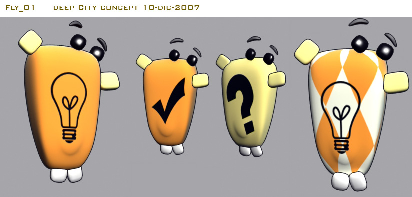 Y debajo adjunto algunas pruebas de personajes fly abstracto/simbólico que no funcionarían muy bien en animación, interpretativamente hablando.