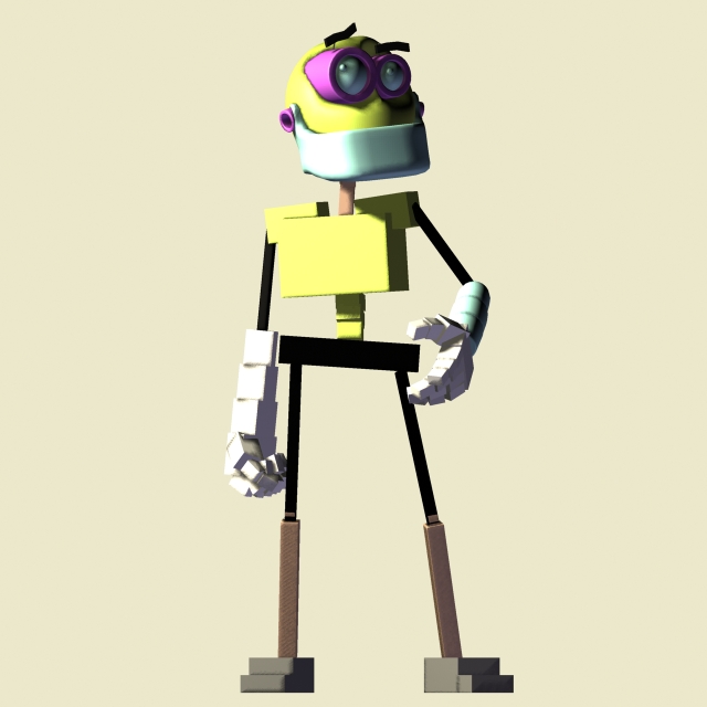 Gracias, 3DM. He estado rebuscando por los antiguos archivos de personajes y he encontrado un test de animación que hice con el modelo de rob, es gracioso, el estilo es muy cartoon, y le puse una sirena de esas de policía como gorro en la cabeza, abril del 2006, si que ha llovido, fiu.