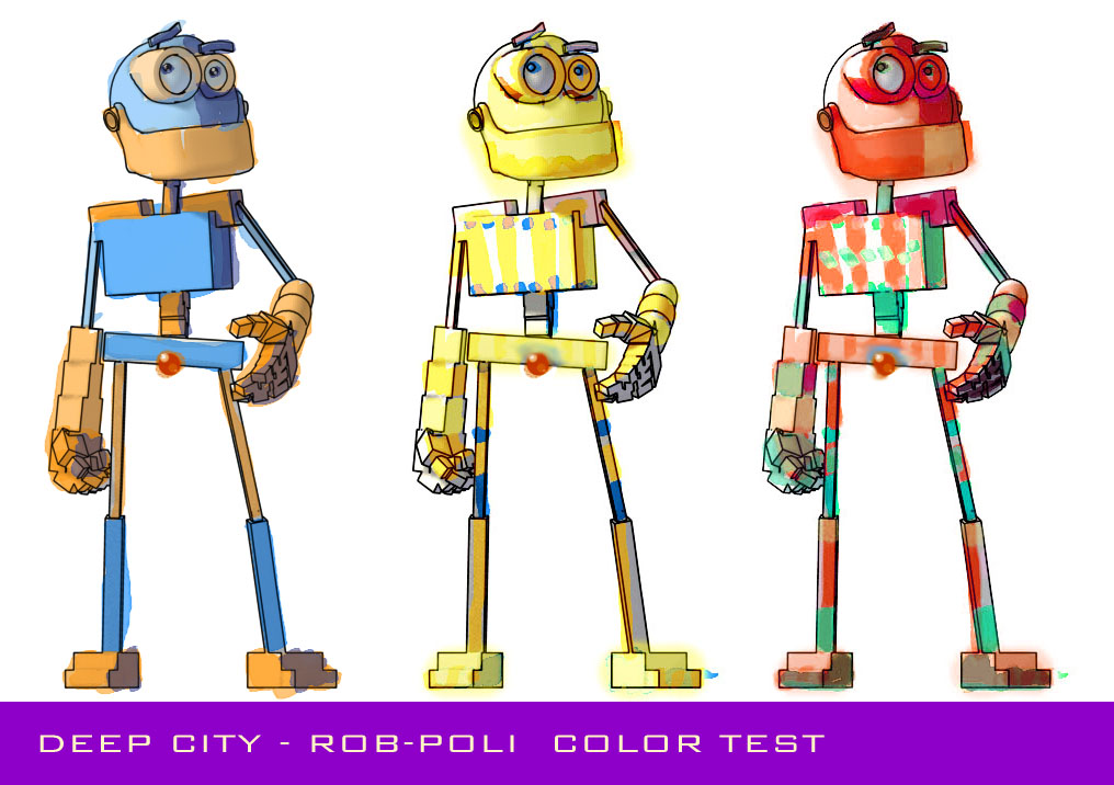En Deep City no hay sol, me cuadran más con el guión las gafas naranja que tiene el último boceto de Pit, por ejemplo.