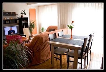 Ventana 1: es una ventana muy grande, entra la luz a raudales y rebota en las paredes blancas, da una luz homogénea y difusa, pero muy cerca, quema.