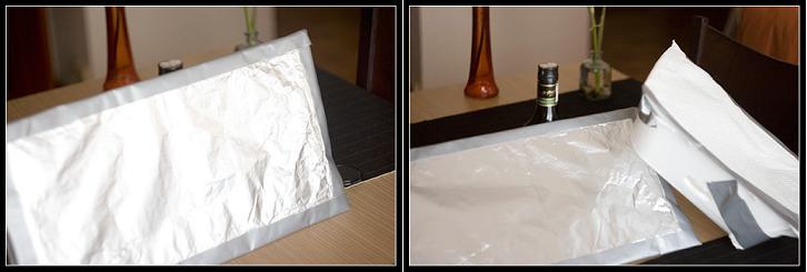Difusor plata, hecho con cartoon de cereales y papel plata de cocina, puesto a la izquierdo para rebotar.