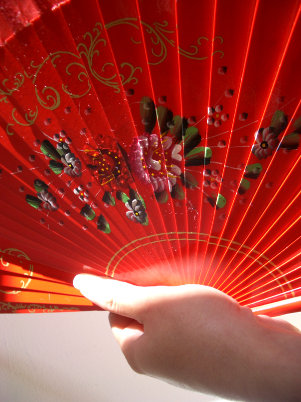 Si coges el abanico y la cámara con la misma mano, ya te digo yo si hacemos una fotografía con movimiento y el abanico perfectamente enfocado y si no es con la mano algún artilugio se puede inventar para llevar la fotografía a buen puerto.
