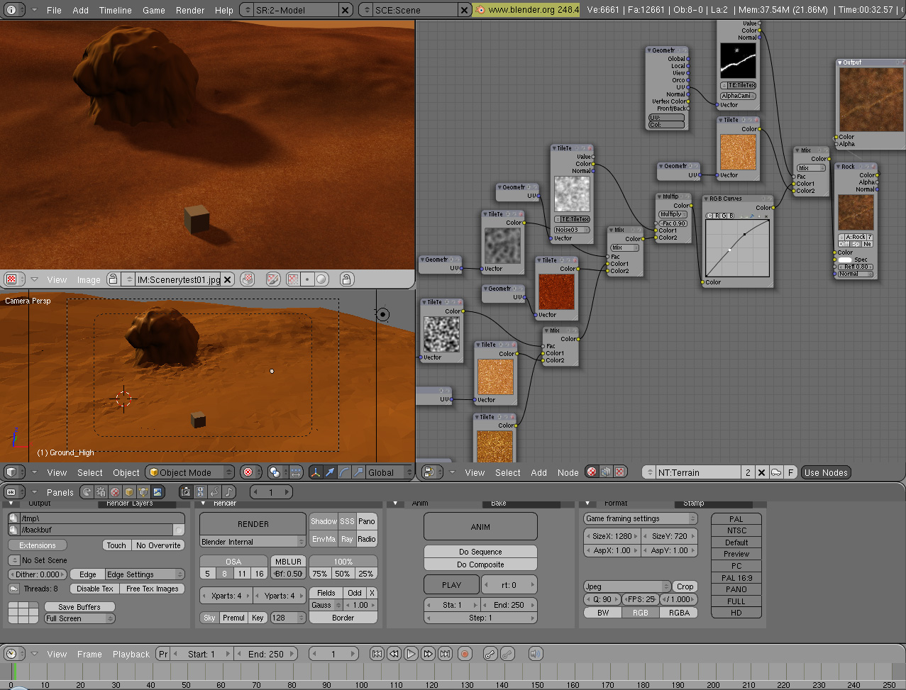 En otro de los casos (que más o menos iba funcionando) ponía dos claves, una al principio y otra al final de la acción, para que fuera girando siguiendo a la cámara, pero en vez de ir progresivamente de una a otra, en medio de la animación, pasaba de una postura a otra en solo un fotograma.