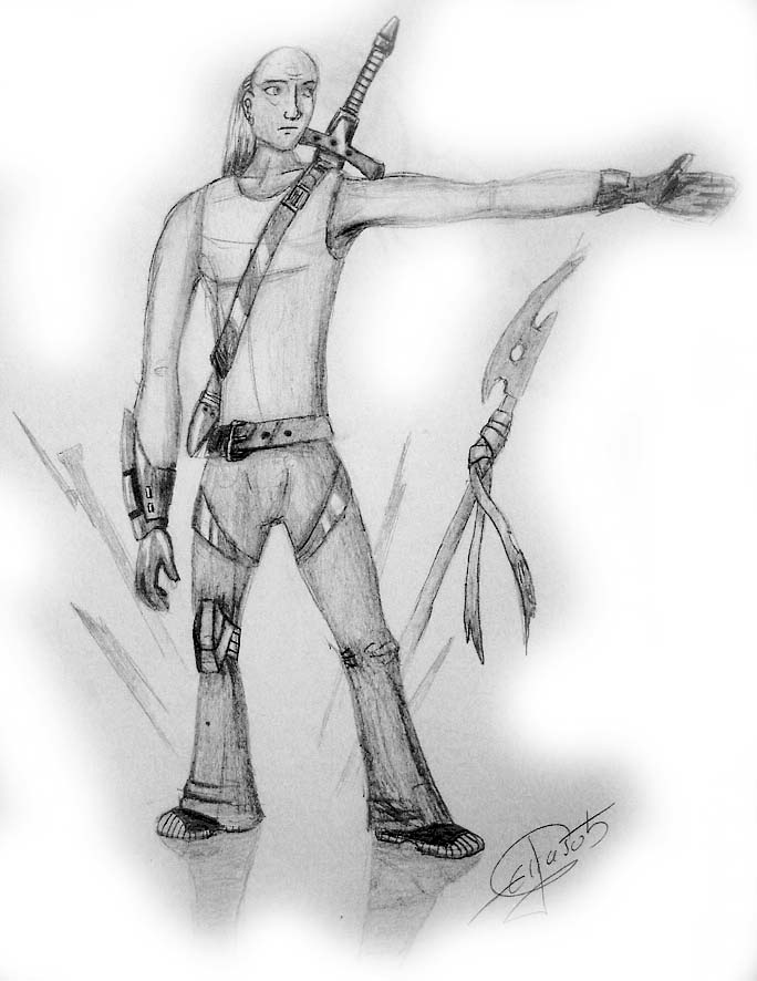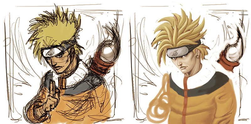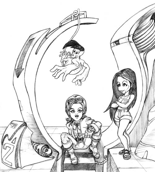 Hey, lo de Moe no vale, si es un trabajo que hasta ha sido pagado para televisión. Pondré yo entonces mis intentos de dibujar en estilo manga, serán del 2003-2004, no les podía pillar el estilo a los ojos ni a las facciones, y aún no los pillo.