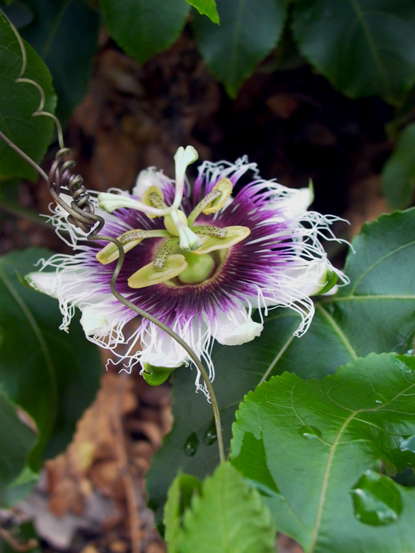 La apariencia de la flor, similar a una corona de espinas, indujo a los colonizadores españoles a denominarla fruto de la pasión, su estructura pentarradial recibió una interpretación teológica, con los cinco pétalos y cinco sépalos simbolizando a los diez apóstoles (doce, menos judas iscariote y Pedro), mientras que los cinco estambres representarían los cinco estigmas. Finalmente, los tres pistilos corresponderían a los clavos de la cruz. wikipedia.