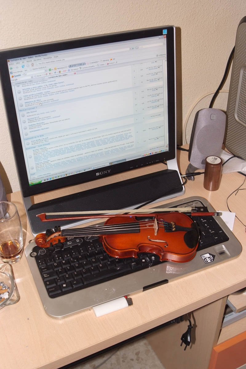 Aparte de la guitarra de jazz, también me compré un violín octavo. El más pequeño de la familia de los violines. Parece de juguete, pero es de verdad.