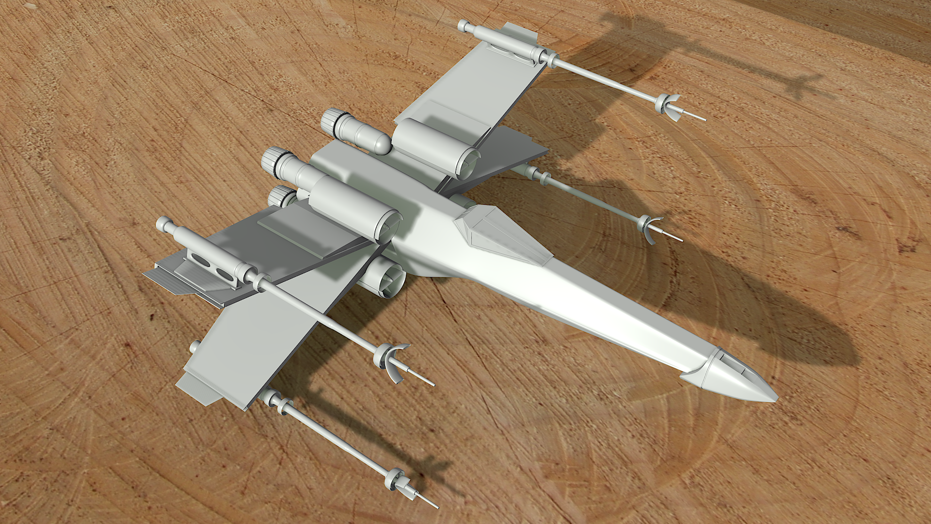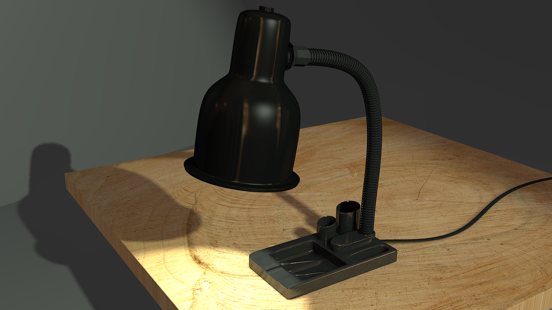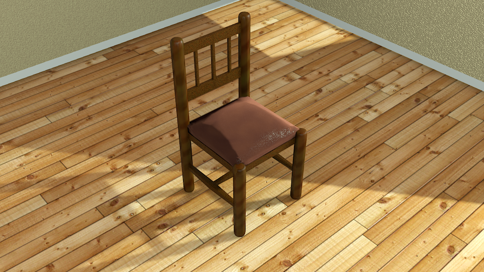 El juego de las sombras está bien, aunque un poco fuerte, La textura de madera no la llego a apreciar bien, tal vez el tamaño es muy pequeño. Si hicieras un render más grande se vería mejor.
