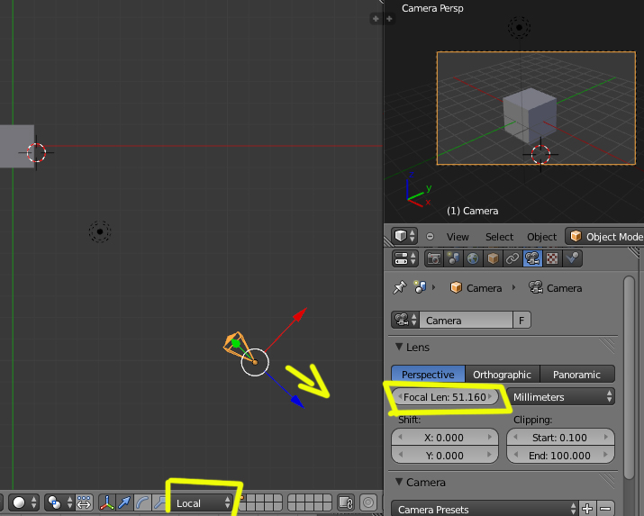 Seleccionas la cámara y cambias la forma de moverla con el manipulador a LOCAL (así la cámara se moverá con respecto a sus ejes)