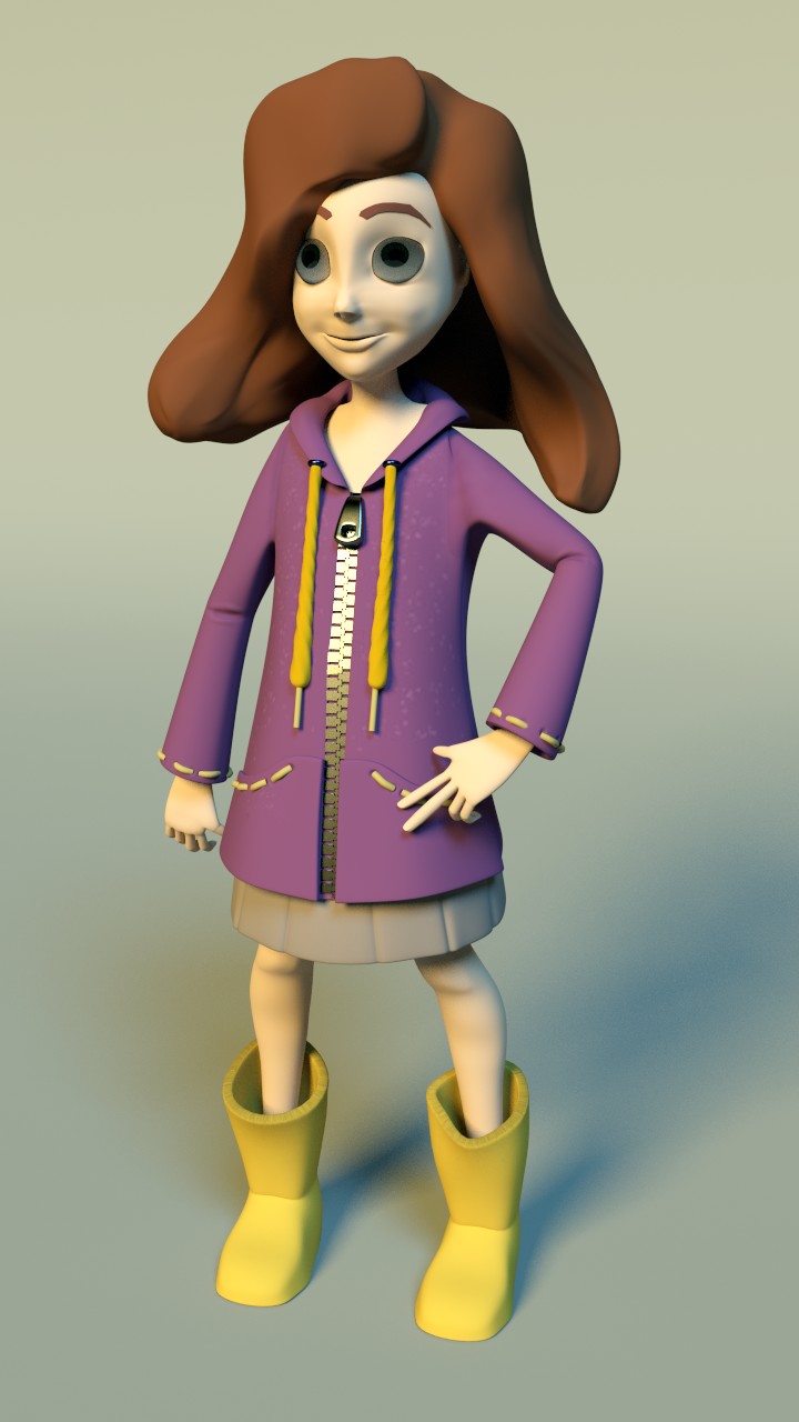 Bueno creo que ya está, el pelo me ha costado bastante y me hace unos reflejos un poco raros, pero no tengo ni idea de Gimp ni postproducción, que creo que sería la forma de solucionarlo, también me he animado con las texturas, y para mí sorpresa creo que están bastante bien.