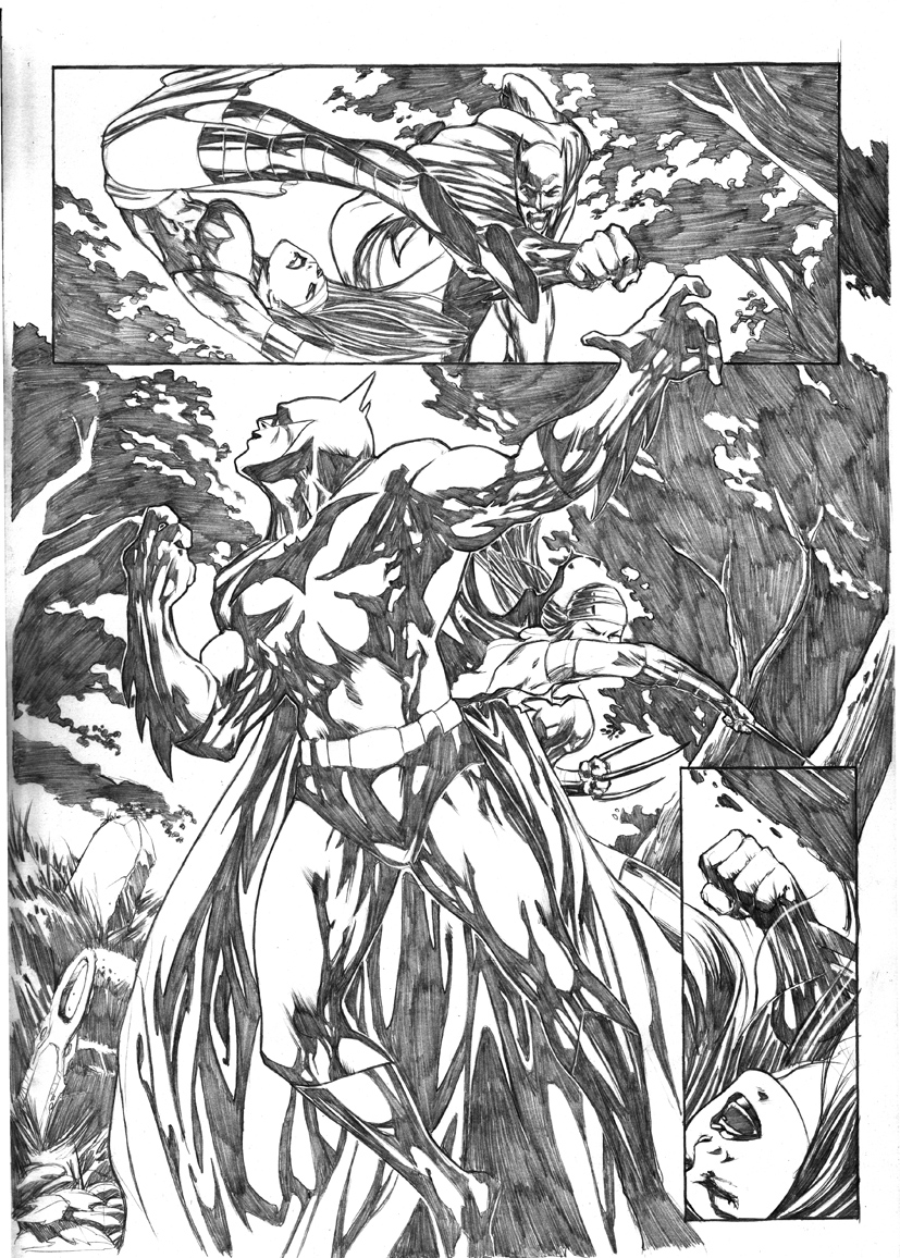 Pero: estas páginas son mejores que muchas de las que se publican, hay autores consagrados que no tienen tu nivel en dibujo, ni la fuerza y el dinamismo de tus personajes, ni el buen acabado de tus lápices.