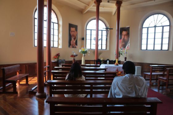 No hace falta qué miremos a Venezuela, en España la ministra de trabajo dijo que ha ver si la Virgen de no sé qué nos ayuda con la crisis, en fin, que en todos lados hay locos, el problema no es el político, el problema es que, si hace eso es porque saben que funciona, y aquí lo siento, pero idiotizar al pueblo con la religión no es invento del chavismo, llevan más de 2000 años idiotizados. Saludos.