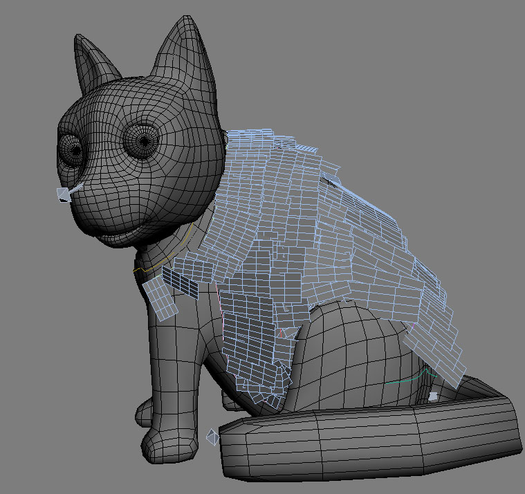 Bueno, aquí estoy otra vez me he vuelto loco para controlar las plumas del gato, hasta que al final he decidido hacerlo manualmente y no con el Hair and Fur, ya que tenía que tener una cierta disposición el modelado para que quedase bien las plumas, en fin, aquí el update con rigging y prueba de pluma dentro de poco verán el render.