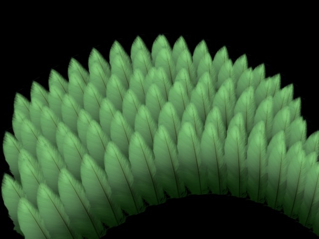 Magnífico. Ya sé que esto que voy a decir probablemente no se aprecie en la imagen final, pero ¿sería posible deformar aleatoriamente un poco las plumas para que luego no queden todas exactamente iguales? Saludos.