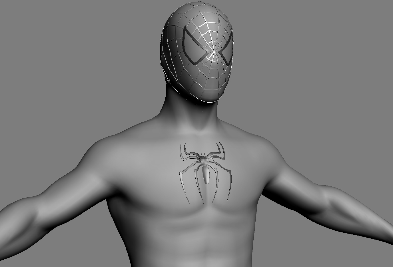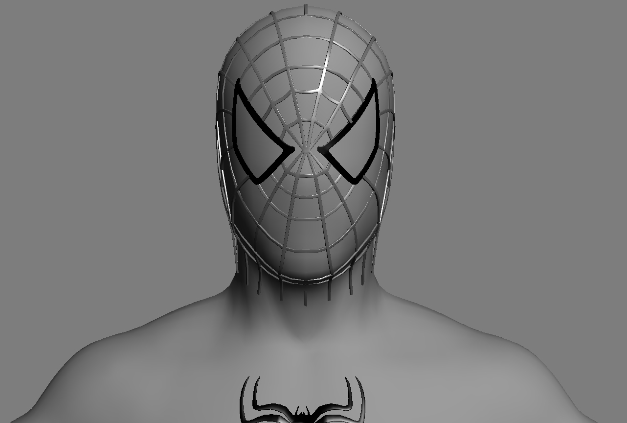 A la cabeza no podrías estirar un poco la máscara para que diera la sensación de que tiene nariz? Por lo demás genial. No lo muscule smucho, déjalo mejor fibrado, que es como tiene que ser Spiderman realmente nada de un tío tocho, es fuerte, pero no mazado, es más bien como un modelo, bien definido, pero fibrado, además tiene que estar ágil y flexible. Si lo haces muy musculoso y con traje negro parecerá veneno, ay que ddie brok si que se supone que es un tío musculoso, además cuidabe mucho su cuerpo para poder seguir el ritmo del simbiontee.