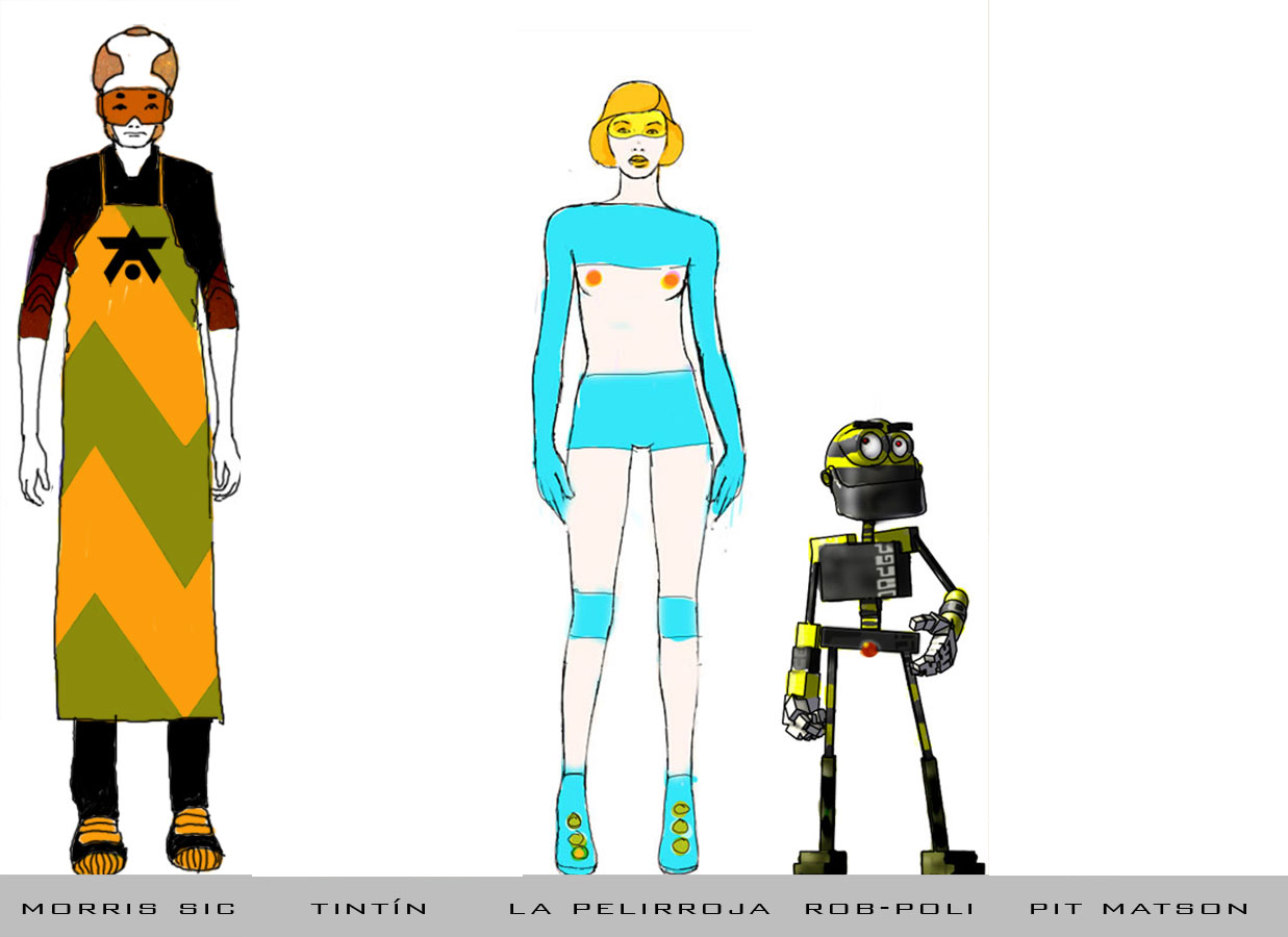 Lo mejor es definir el mundo de DC vamos bien dejamos definidos Pit, la pelirroja, Morris sic, Tintín, fly, rob-poli, los robs, rob-XSI, los móviles y las fly tools pero luego para la primera secuencia modelamos sólo a Pit, la pelirroja y fly.Cita: