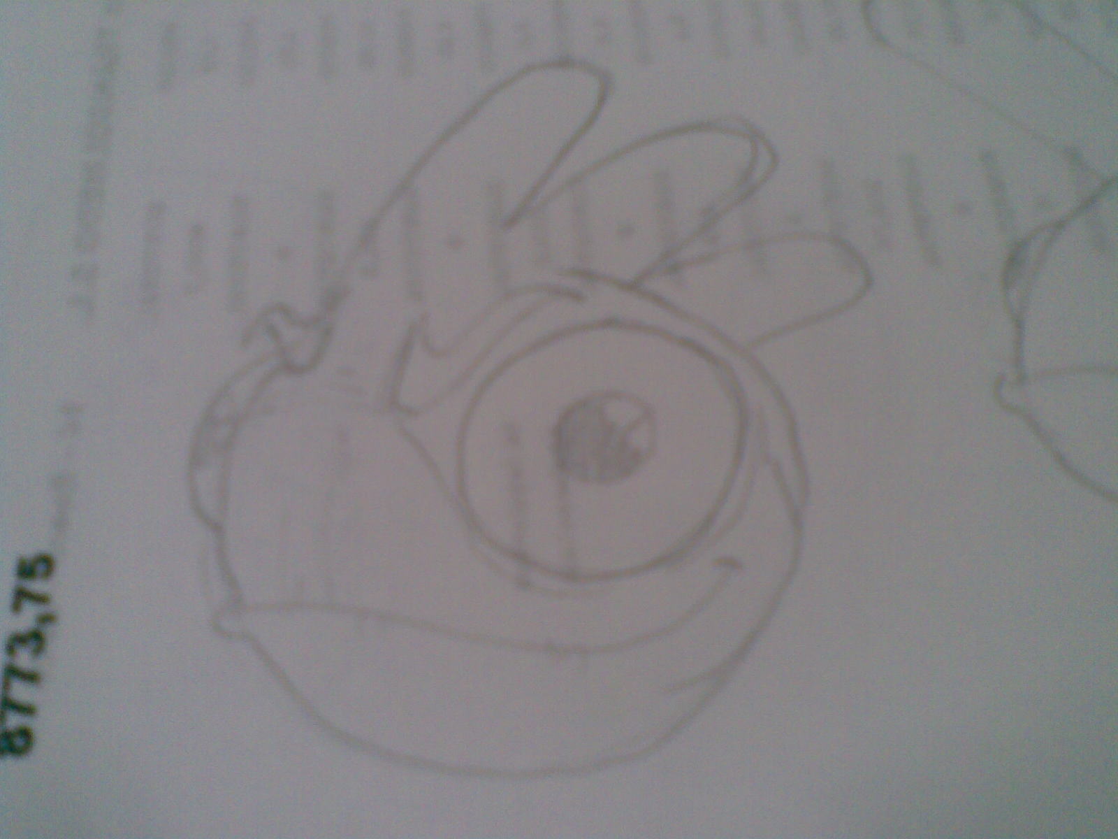 Divagando con el lápiz, a ver si pega en el estilo. Ojos grandes, saltones y azules y el resto naranja.
