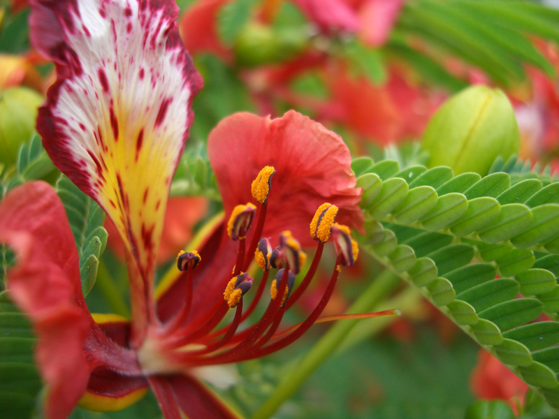 El año pasado planté un maracuyá en la terraza. Ha crecido mucho, pero aún no tiene flores, aunque está a la sombra. Lo que espero impaciente es a que eche flores mi ave del paraíso, que ese sí lo cogí de allí de Canarias, aunque le ha costado pasar el frío del invierno al pobre, tiene algunas hojas destrozaditas. Tiene ya 3 años, se supone que es al tercer año cuando empieza a dar flores. Lo que no consigo ni de coña es un flamboyan.