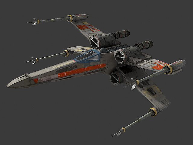 Pues acabe con el x Wing, os lo pongo bien grande y con el valor de antialiasing very high para que le podáis sacar todos los defectos que queráis, renderizado en Vray. Saludos.