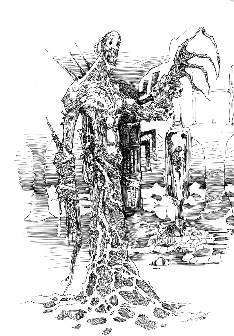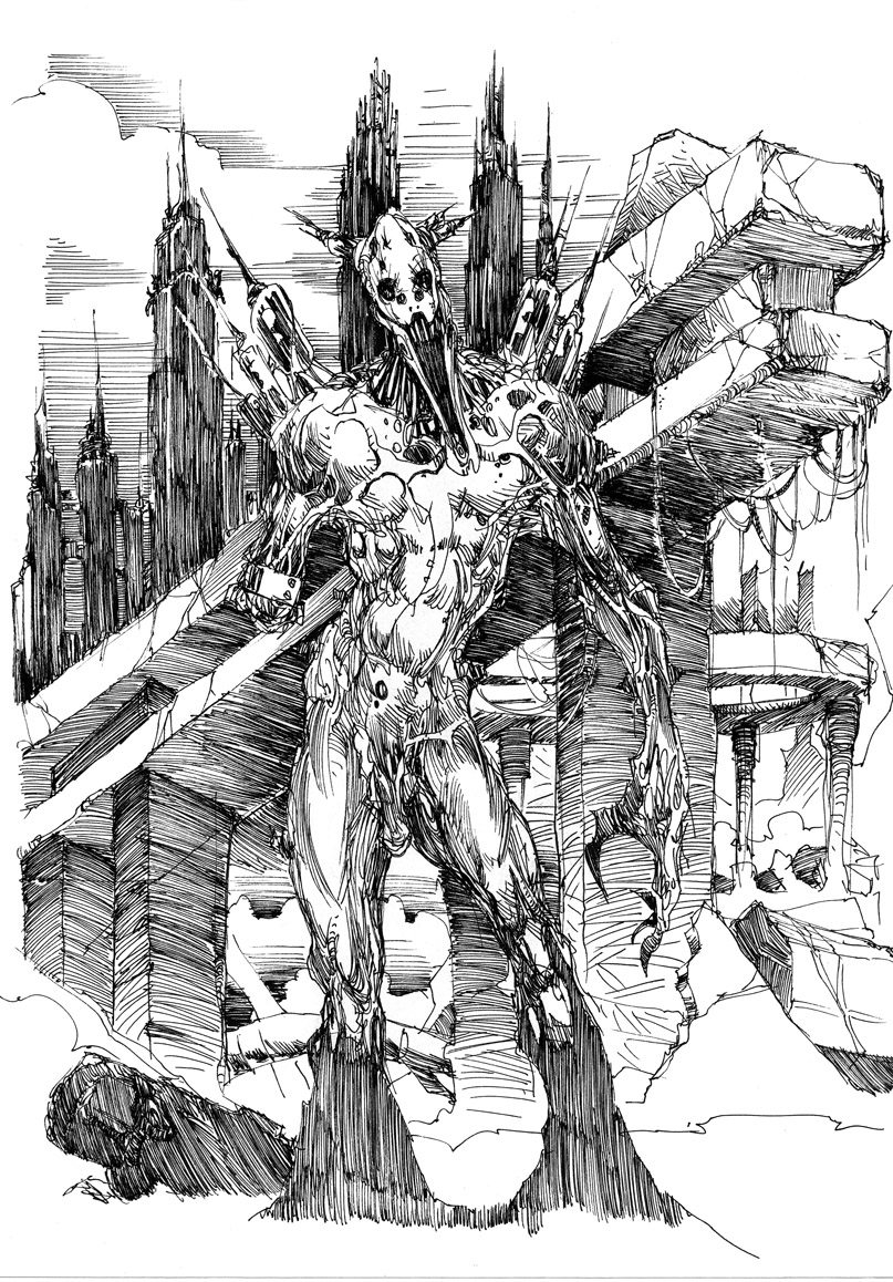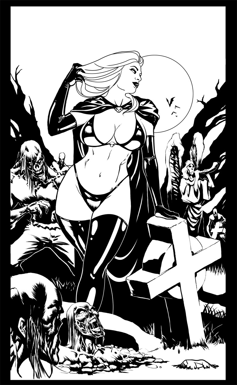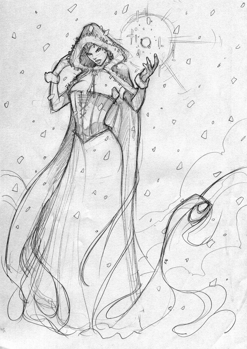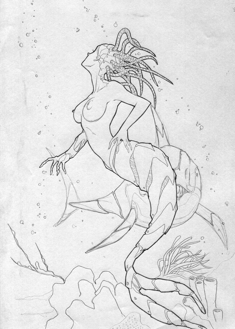 Sif, muy poderosa, los ojos del fondo me confunden ¿a quién pertenecen, a sif, un observador etéreo? Retomando lo que dice Ballo sobre la tinta ¿envías solo lápiz, tinta ¿no?