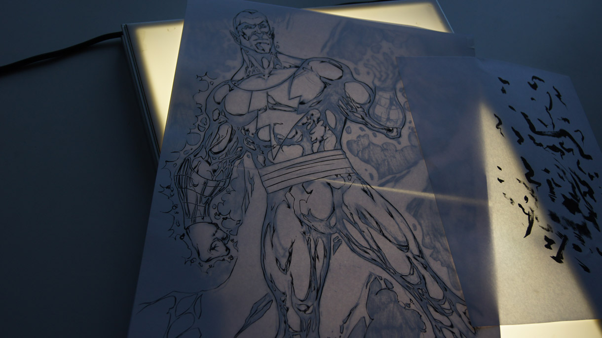 Muy fuerte, quedará genial cuando lo pases a tinta, la cara es de lo mejor sin duda.