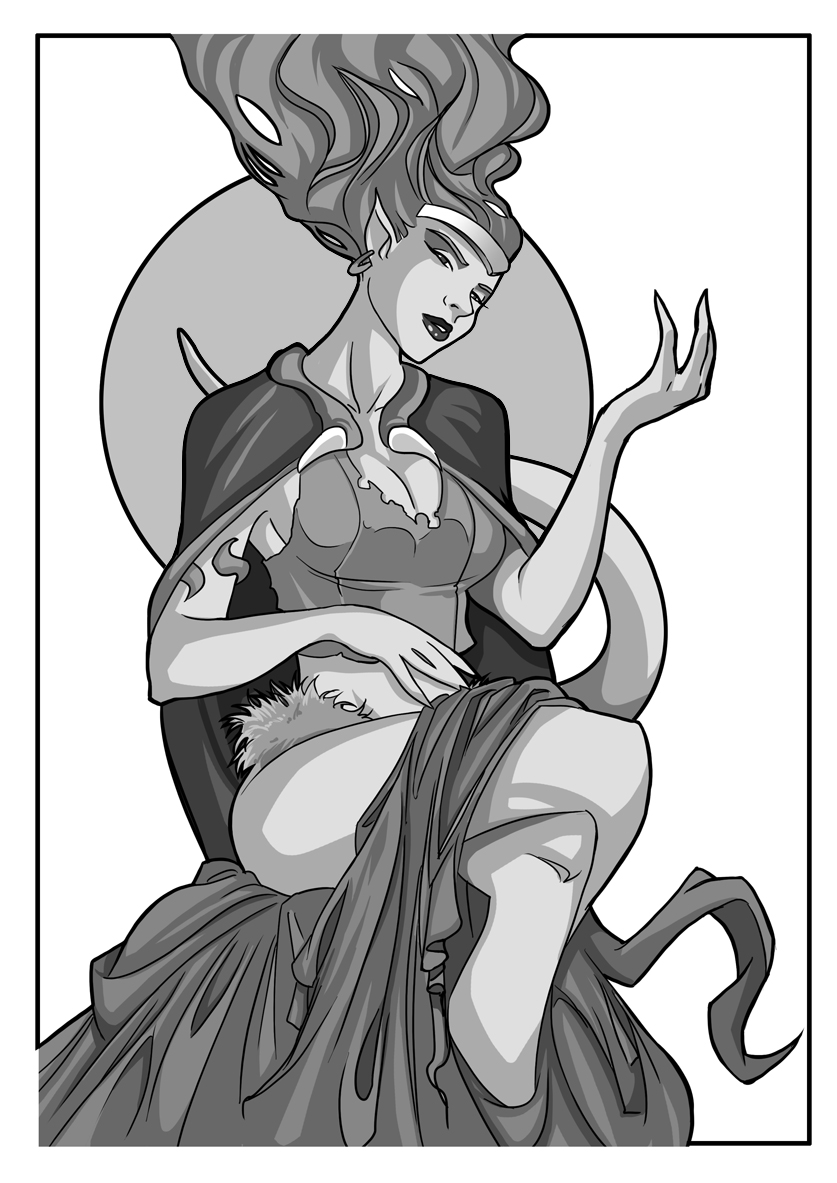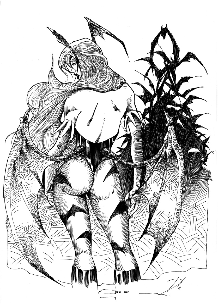 Gracias iré y Sejob. Cuelgo un dibujo que he hecho a modo de descanso de tanto pincel y cómic. Una versión de demona, la mala de gargolas. Hecho totalmente en Wacom.