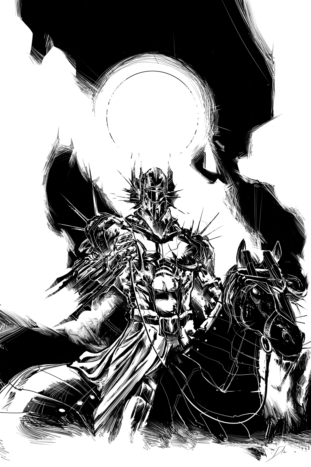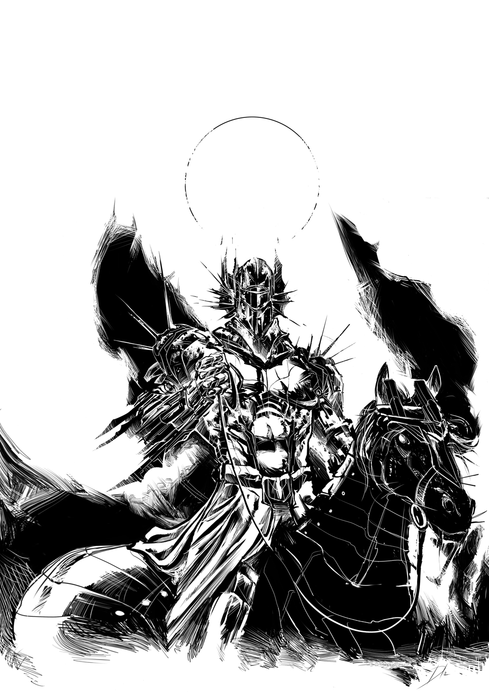 Oscuro y gótico, hay que ver cómo cambias de registro, el jinete es imponente, pero a mi el que me mosquea es el caballo, creo que es por esa.