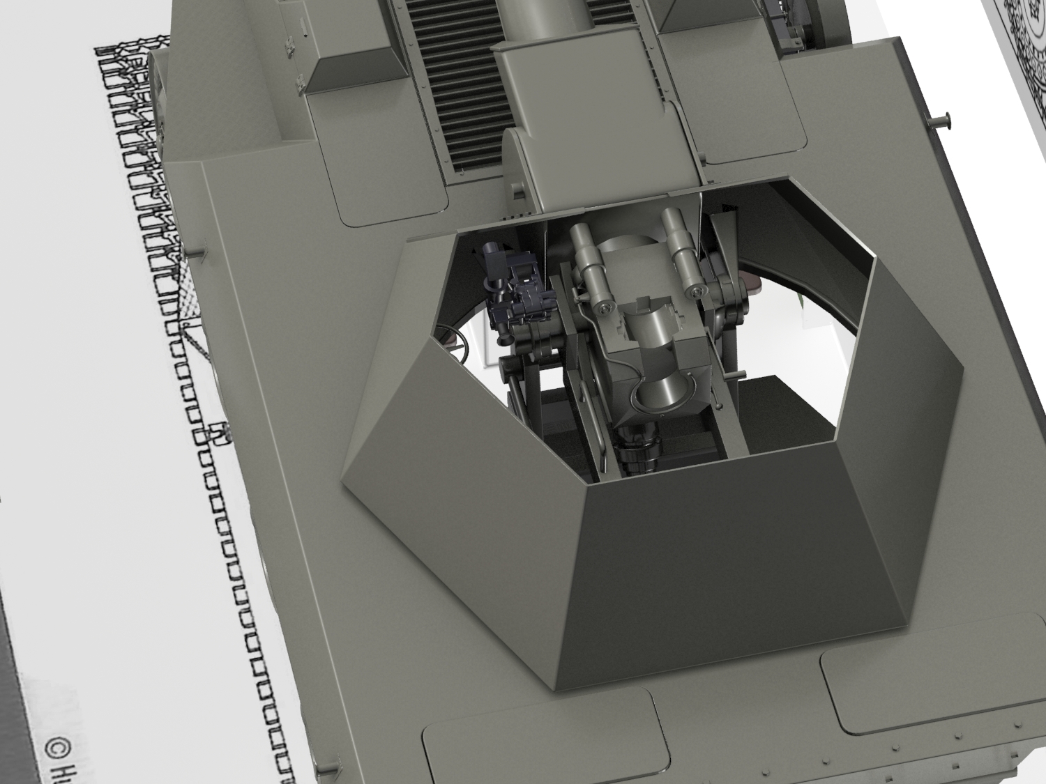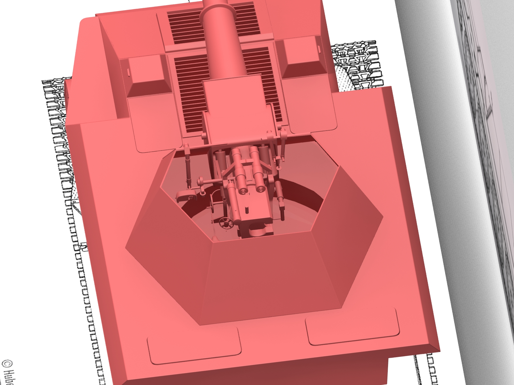 Como éste va con la cMortal Kombat al aire, había qué hacerle algo visible. Al saber que llevaba un 88mm, pues ni corto ni perezoso fui y le coloqué el de mi Nashorn. Pero este fin de semana, he pillado información de una maqueta de Trumpeter y que va, que va. Es otro 88mm (no sé cuántos había) así que, le he remodelado de nuevo todo. He cambiado el interior de la torreta, y de paso le he modelado un interior muy esquemático e inventándome de paso más o menos, porque el de la maqueta era un poco increíble y no cuadraba mucho.