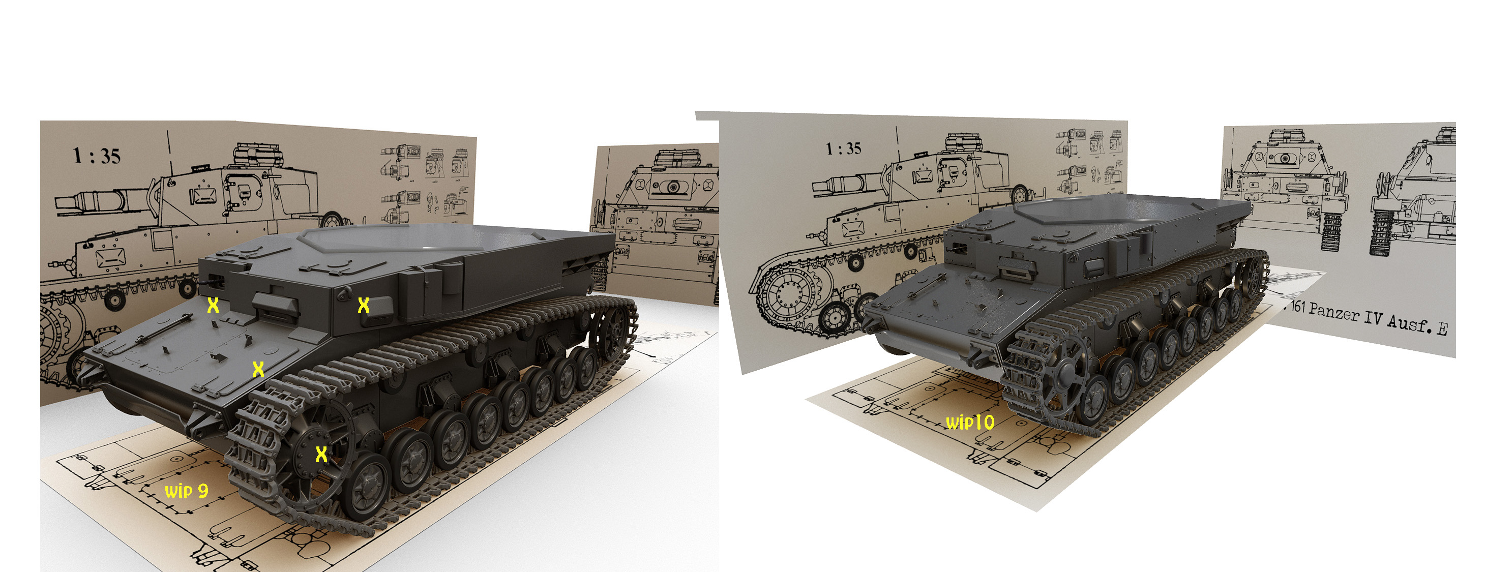 Ésta ya la tengo acabada, y me he enterado ahora qué había otra un poco más avanzada qué incluía modernizar la torreta también, asemejando al Panther, pero esa no la voy a hacer, ya que no he visto dibujos originales, sólo maquetas.