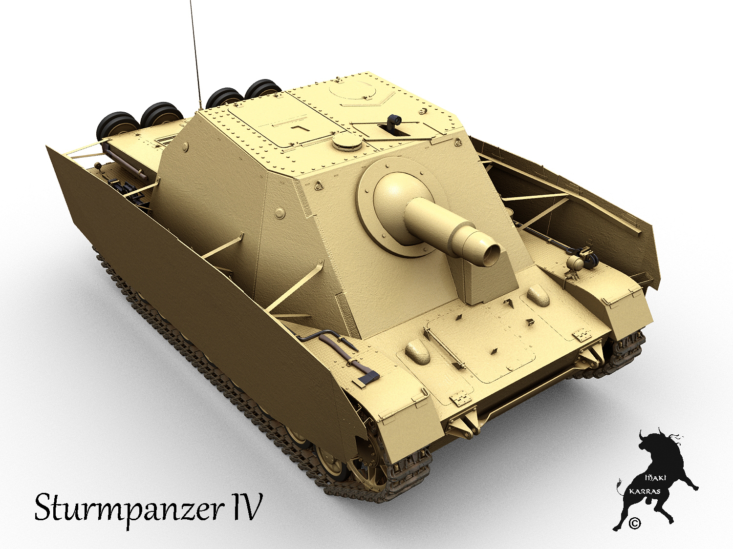 La antiaérea es la Ostwind, y la de demolición es la Sturmpanzer IV, que increíblemente no he visto muchos modelos 3d de él.